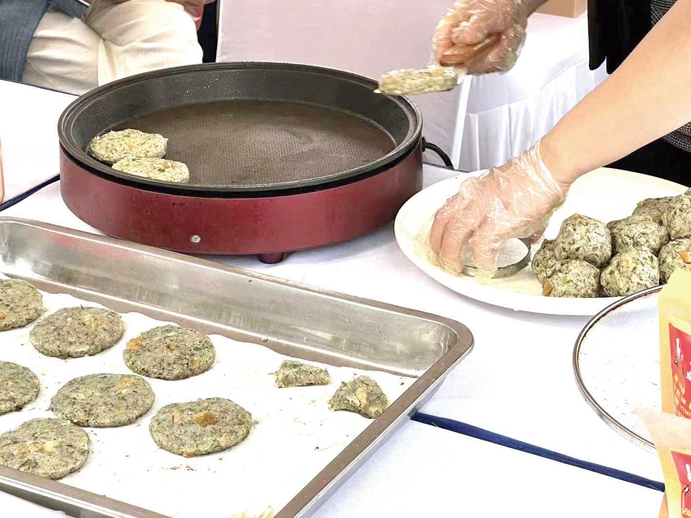 ▲ 六安市非遗推介现场展示蒿子粑粑制作过程 郑明玥 摄
