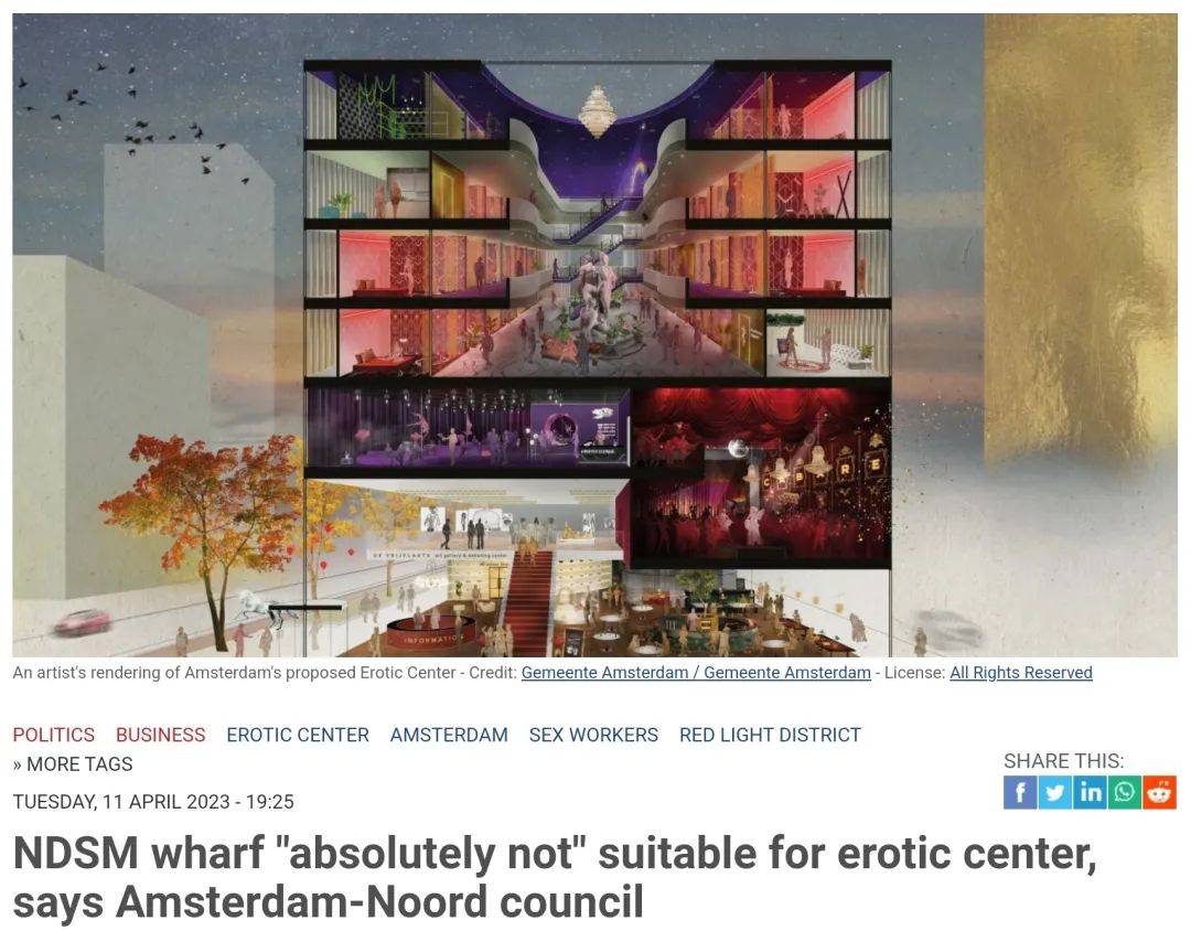 阿姆斯特丹市政此前提出的三个可能的红灯区新址,有两个在Zuid区一带,一个在Noord的NDSM码头,这新的红灯区将为大约100名性工作者提供工作场所,阿姆斯特丹的市长Halsema公开表示必须在2023年底之前确定地点。