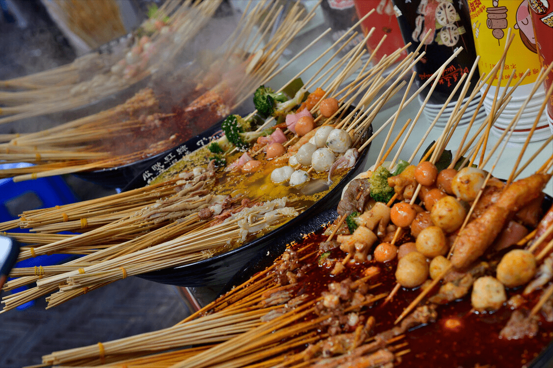 其次就是串串香的食材,不管是食材本身的品质,还是在穿插在竹签上,都要经过考量,这样才能保证所有的食材发挥出它原有的一个品质,吃起来才更加的鲜美。