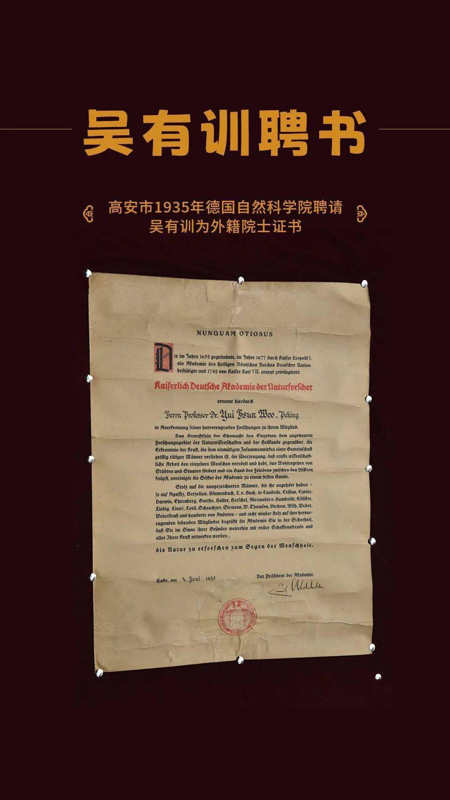 20.高安市1935年德国自然科学院聘请吴有训为外籍院士证书