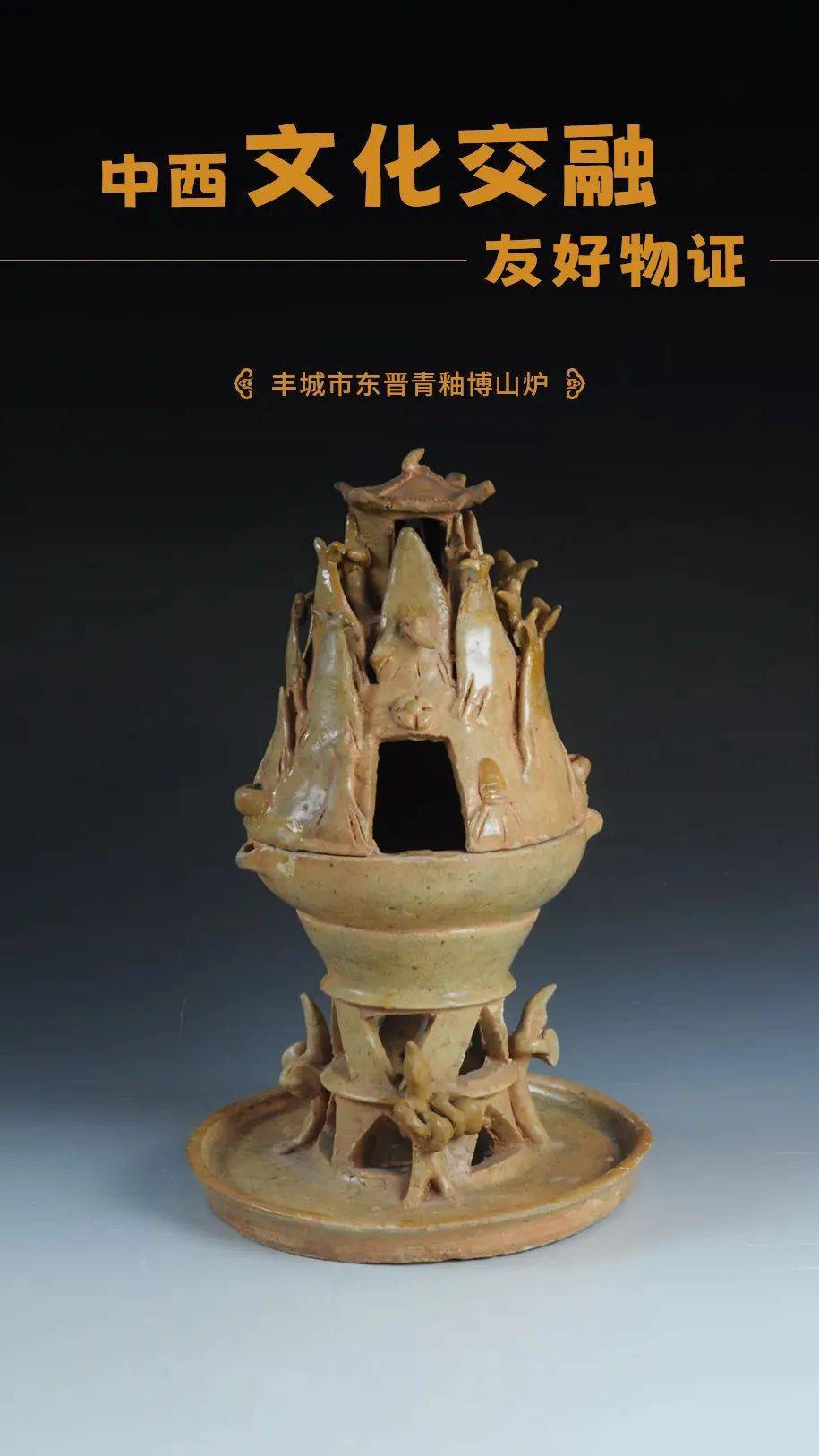 该炉作蓬莱仙山楼阁状,在炉中出现的西域胡人,是东晋时期中西文化交融友好交往的物证。