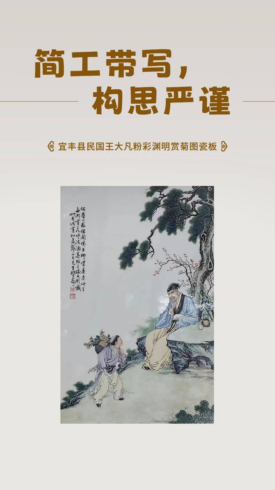 17.宜丰县民国王大凡粉彩渊明赏菊图瓷板