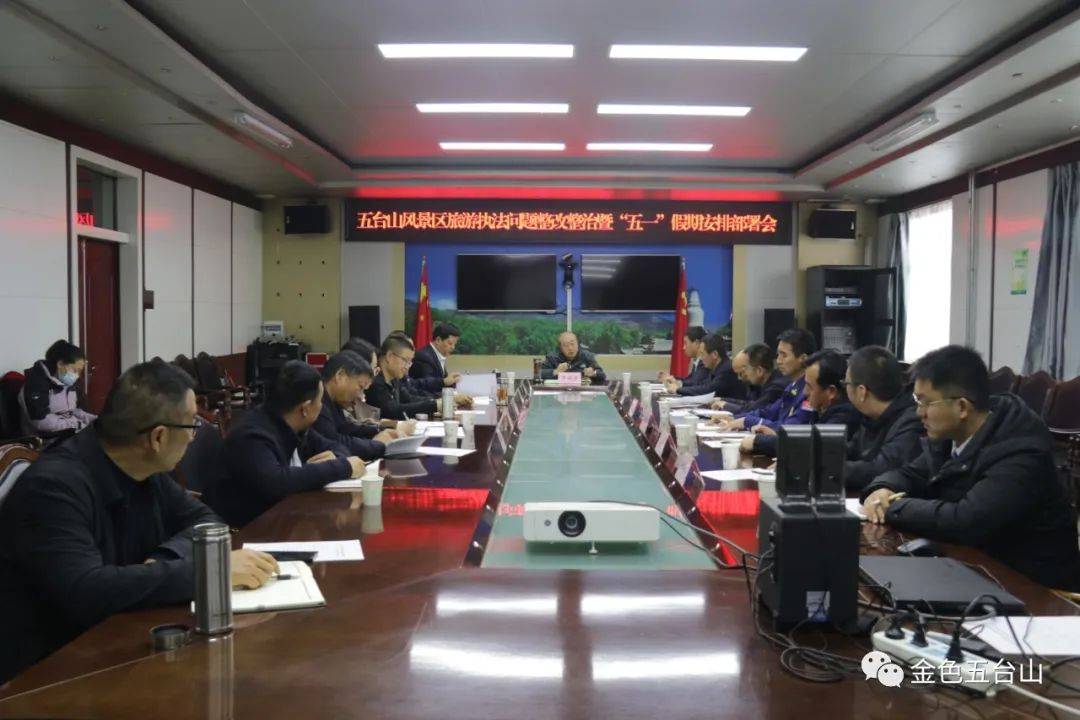 4月21日,五台山景区召开旅游执法问题整改整治暨“五一”假期安排部署会。景区党工委委员、管委会副主任力尚宏主持会议并讲话,景区各相关单位负责人参加会议。