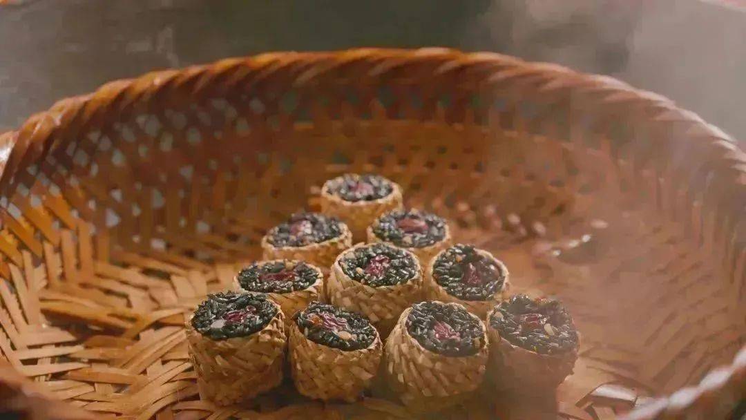 我们制作乌米饭是用捣碎的乌稔叶制成天然染色剂,然后将洗净的糯米放在这个汁水中浸泡一晚上,糯米就会变成浅草绿色,再放到锅里蒸煮直到糯米变黑,乌米饭就完成了。