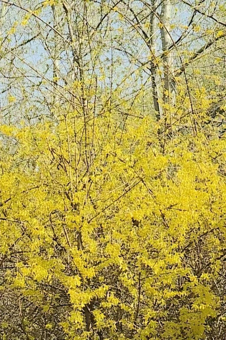 羞答答的榆叶梅,娇艳欲滴,恰似亭亭玉立的少女,在春风洋溢下翩翩起舞。金黄的连翘缀满枝条,向阳而开,恣意绽放,热烈而又灿烂。一路上,榆叶梅和连翘相映成趣,绵延数里,美不胜收。“疑似三月将白雪,闻香方知杏花田”,一株株如履霜雪,一团团闪闪夺目,一树树淡粉薄胭的杏花,在碧蓝如洗的天空下,层层叠叠,让前来踏青赏春的游客心旷神怡,陶醉不已。