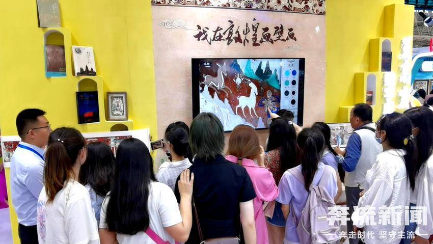 甘肃主题展馆特别设立“我在敦煌画壁画”融媒体数字创意互动展台,该展台基于敦煌研究院和腾讯公司多年来的合作成果和实践经验,以数字文保的创意驱动为支撑,选取跪谢九色鹿、帐幕卷裹外道、初会听法八部众等敦煌壁画中具有代表性的10幅壁画,通过模拟仿真技术数字化呈现壁画脱落效果,在展现文物脆弱、珍贵特点的同时,引发人们对敦煌数字文保的关注;观众还可以结合岩彩颜料研究成果为壁画线稿重新上色,沉浸式体验壁画绘制过程,创作属于自己的独一无二的敦煌壁画作品,感受博大精深的敦煌文化艺术之美。