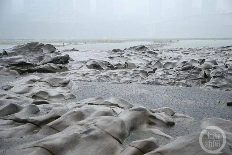 “砂泥岩软硬不同、抗风化能力不同,隐藏着重庆沧海桑田和渝中半岛形成演化的秘密,江北嘴江滩公园即可寻得其形成及演化的证据。”