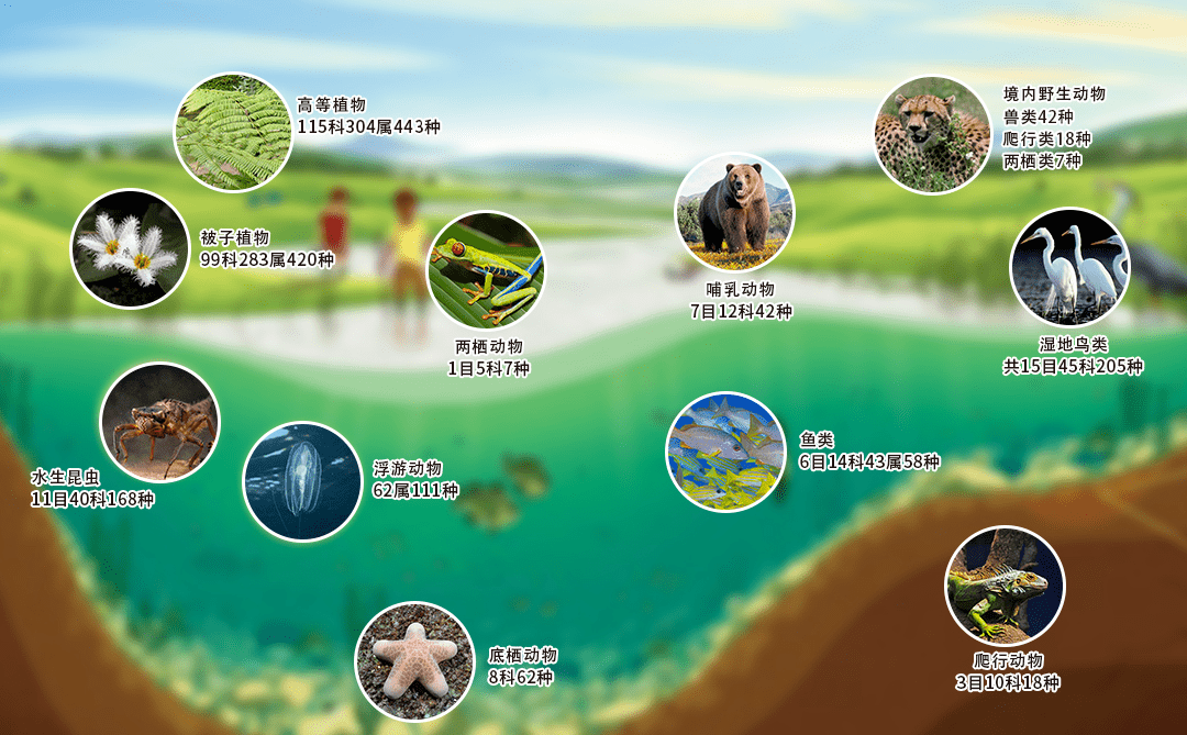 与南昌人一起寄居在这片陆地上的动植物数量庞大, 植物郁郁葱葱,动物形态万千。