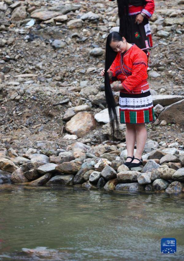 当日是农历三月初三,广西桂林市龙胜各族自治县黄洛瑶寨举行“三月三龙脊长发节”活动,吸引游客前来参观游览。黄洛瑶寨的红瑶族妇女有世代相传的蓄发习俗,平均头发长度达1.7米,最长的有2.72米。