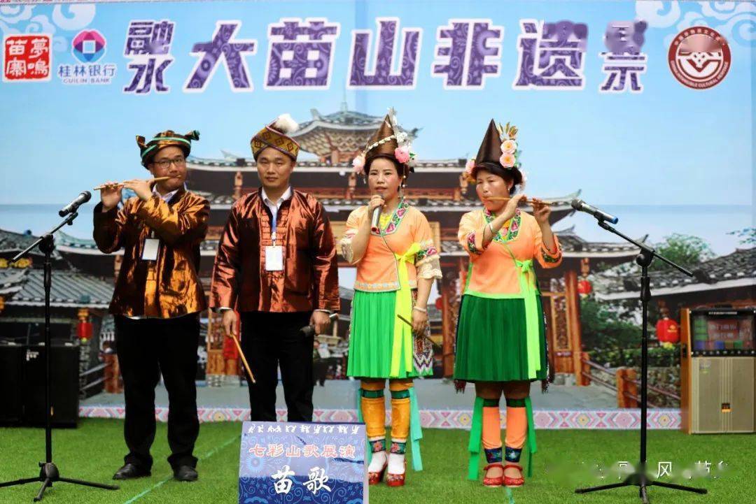 简短的启动仪式结束后,融水各族群众穿上了民族盛装,共同唱响“融水七彩民歌”。一曲曲极具浓郁的民族特色的苗歌、瑶歌、侗歌、壮歌、土拐山歌、融水山歌、六甲山歌轮番上演,游客与演员欢聚在美丽的梦呜苗寨,共同感受各民族文化的魅力。