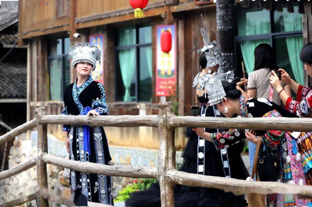 除了观看和参与民俗互动演出,民族风情旅拍成为众多游客到梦呜苗寨旅游必“打卡”的项目。古香古色的苗族建筑、热情好客的阿哥阿妹、漂亮精致的民族服饰都让游客们流连忘返。