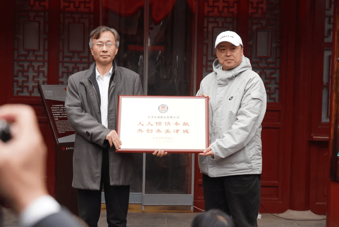天津市慈善协会副会长兰国樑、王晓林向天津交通客运有限公司等万元基金代表颁奖授牌。