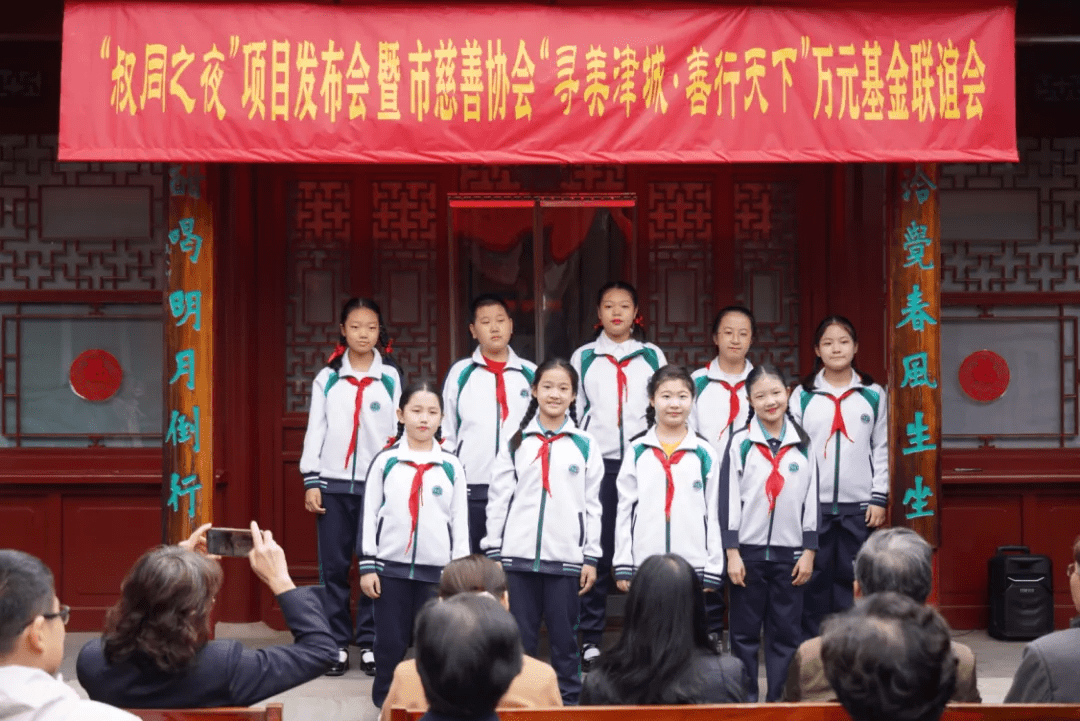 发布会的现场,来自李叔同先生的母校——红桥区文昌宫民族小学的同学们深情地演唱《春游》《送别》等李叔同先生创作的歌曲,向艺术大师致敬。发布会在歌声中圆满结束。