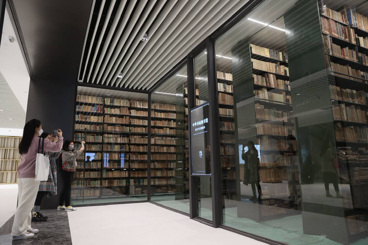 2021年,上海辞书出版社图书馆所藏中华书局图书馆藏书整体迁入中国近现代新闻出版博物馆保管。这一展区是按杜定友、刘国钧分类法陈列的书库,庋藏1935年之前的近代出版品,其中不乏重要工具书和众多名人名著的初版图书。钢制书架、目录柜等亦为原物。透过透明玻璃房,参观者可以看到工作人员整理上架的情形,数字屏上则可以查询书库书目。中国近现代新闻出版博物馆馆长赵书雷说,历经沧桑,原样保存的中华书局图书馆藏书殊为不易,将这部分文物完整展示出来,圆了百年前上海出版人的梦想。