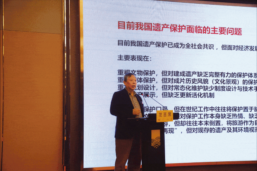 主论坛现场,围绕“多元协作,遗产创新”主题,同济大学原副校长、教授伍江发表《以创新来应对遗产保护的新挑战》主题演讲,厦门大学人类学系主任教授彭兆荣、中国城市规划设计研究院名城分院院长鞠德东、中国文化遗产研究院遗产中心主任赵云、复旦大学文博学院教授杜晓帆、安徽建筑大学教授、博士生导师刘仁义、苏州名城保护集团古城投资建设有限公司董事长、总经理殷铭、苏州市吴江区文保所高级工程师刘延华分别做《中式哲理:土地生长的道理》《历史城区整体性保护与更新实践》《世界文化遗产新转变背景下的江南水乡古镇申遗策略》《文化自信引领下的乡村遗产保护与可持续发展——以乡村遗产利益相关者为中心》《绩溪国家历史文化名城保护与展示实践》《多元结构影响下的苏州古城保护和更新》《多元协作,抢救保护濒危文物——以太湖水利同知署旧址保护利用项目为例》主题演讲。