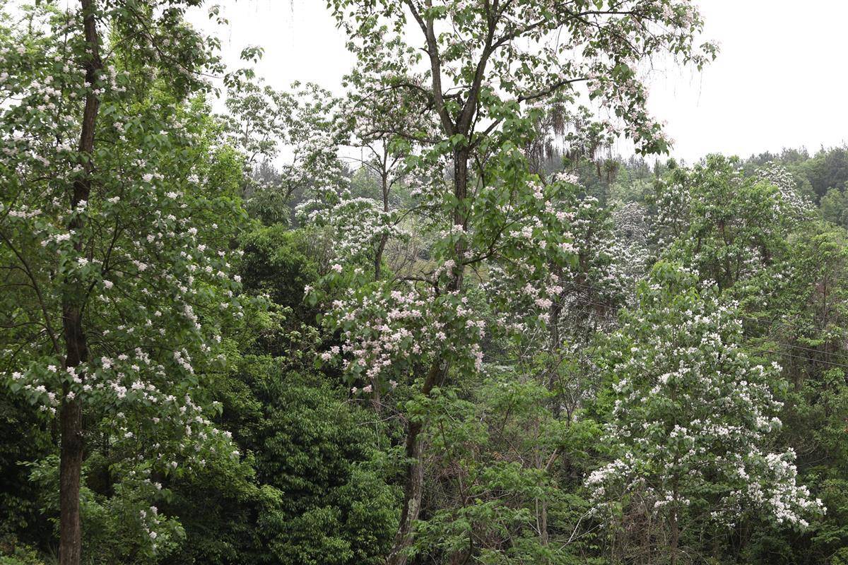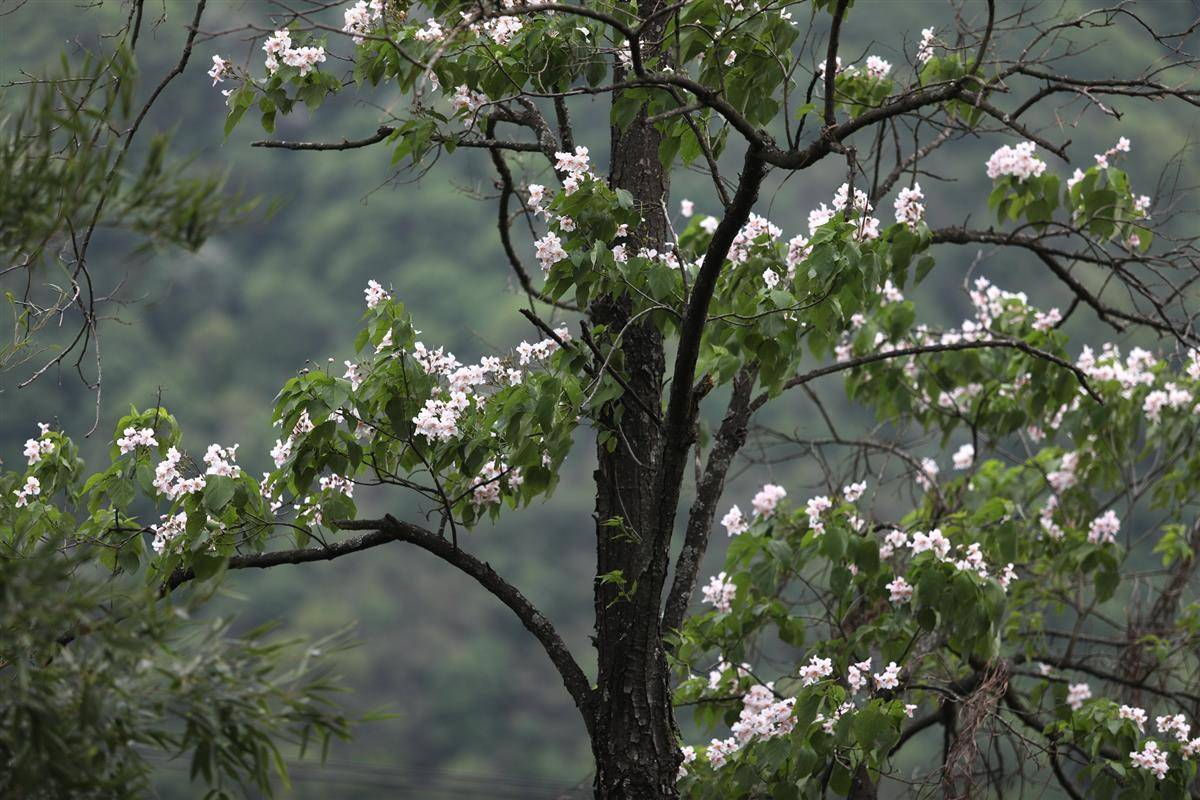 人间四月芳菲尽,楸树花开别样景。4月21日,走进湖北竹山县文峰乡塘湾、中沟、付家坪村,公路两旁、部分农家院落房前屋后,一棵棵高大的楸树婆娑挺拔,盛开着粉白、粉红的花朵,粉黛如霞,层层叠叠,芳香四溢,令人陶醉。