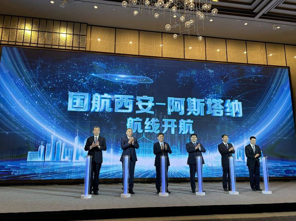 为积极融入和服务共建“一带一路”大格局,加快构建以西安为枢纽,面向中亚、南亚、西亚国家的“空中丝绸之路”网络,经各方共同努力,西安—阿斯塔纳国际航线于4月21日正式开航。该航线是国航在西安开通的首条赴哈萨克斯坦定期远程国际航线,航线的开通将进一步促进西安与哈萨克斯坦各城市的交流联系,为双方经济合作带来极大便利。