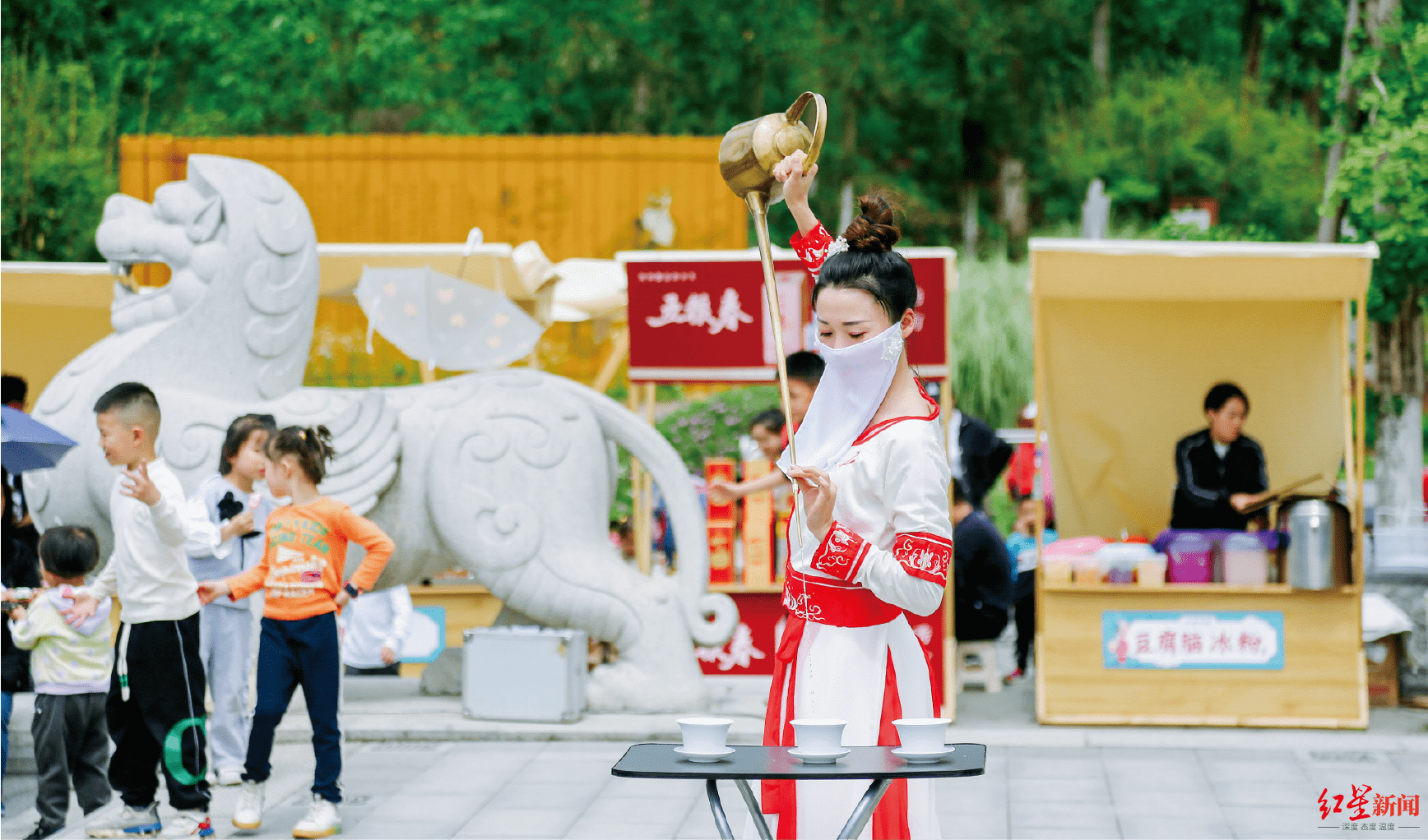 此外,为契合本次朝山节活动主题及彭山当地民俗特色,还特邀非遗竹编传承人、非遗泥塑等川内著名非遗大师为游客现场展示、讲解竹编、泥塑非遗历史及竹编、泥塑产品制作方式教学。川剧变脸艺人、长嘴壶茶艺老师等分时段、地点在园区内进行表演,为游客带来极致非遗文化体验。