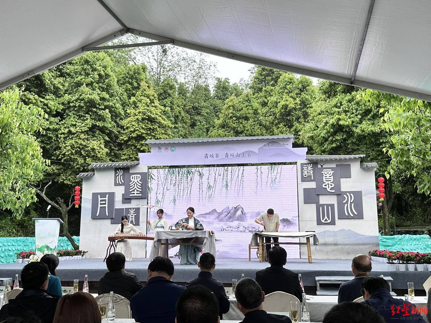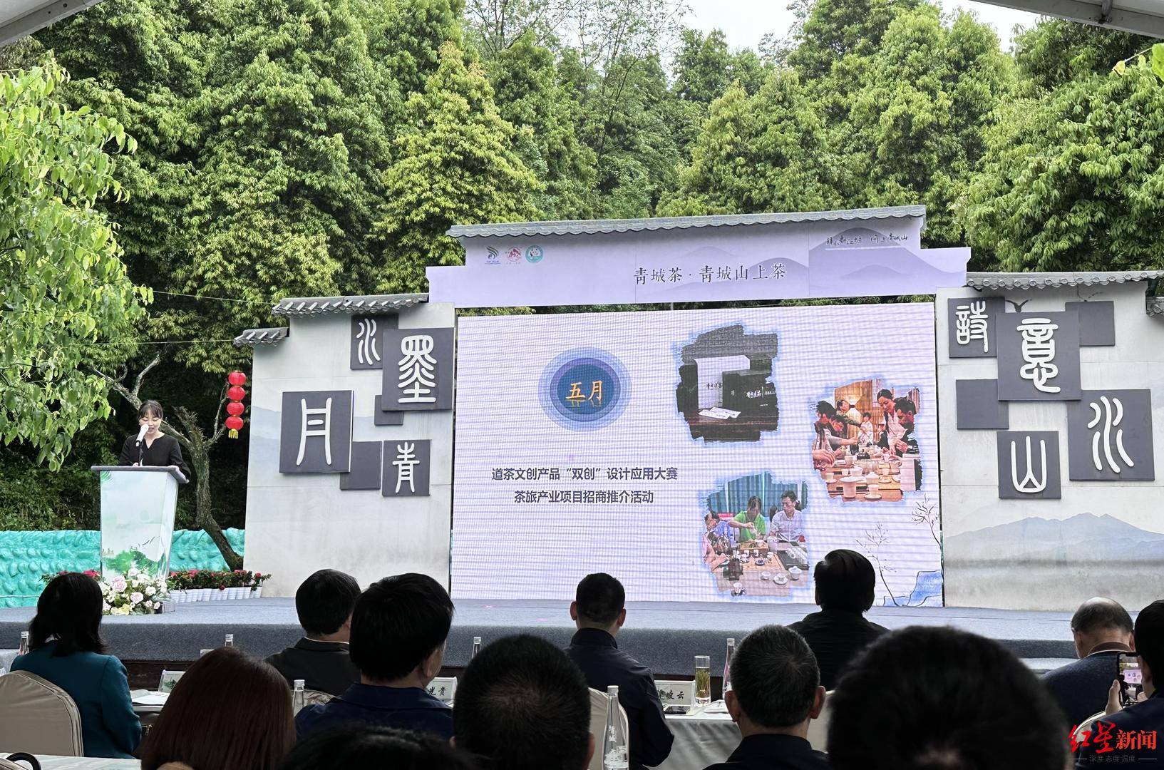 活动主舞台搭建在茶产业园区中,芬芳的泥土气息和着茶园植物的清香阵阵袭来。活动现场,还举办了农旅文创产品“双创”设计应用大赛,青城山采茶、制茶斗茶大赛,青城茶歌及青城武术擂台赛,“青城杯”书画展、茶乡摄影等。