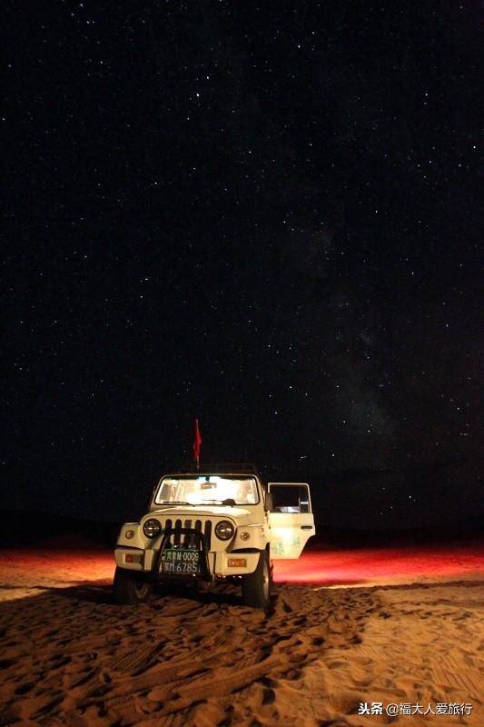 夜幕降临,巴丹吉林的夜空是那么的清澈透亮,云彩般的银河横贯整个天幕,一侧的北斗七星明亮异常。之前我曾有幸体验过草原的夜晚,亦曾有过大森林中露营的经历,但却从没有过今晚这种感觉。四周无风,也没有虫鸣声,更没有一丝光亮,万籁俱静。此刻的我躺在柔软的沙子上,仰望星空,整个人顿时仿佛置身于茫茫宇宙之中,这是一份大都市里永远不可能找到的宁静,我为能感受到这种安宁而心潮澎湃。
