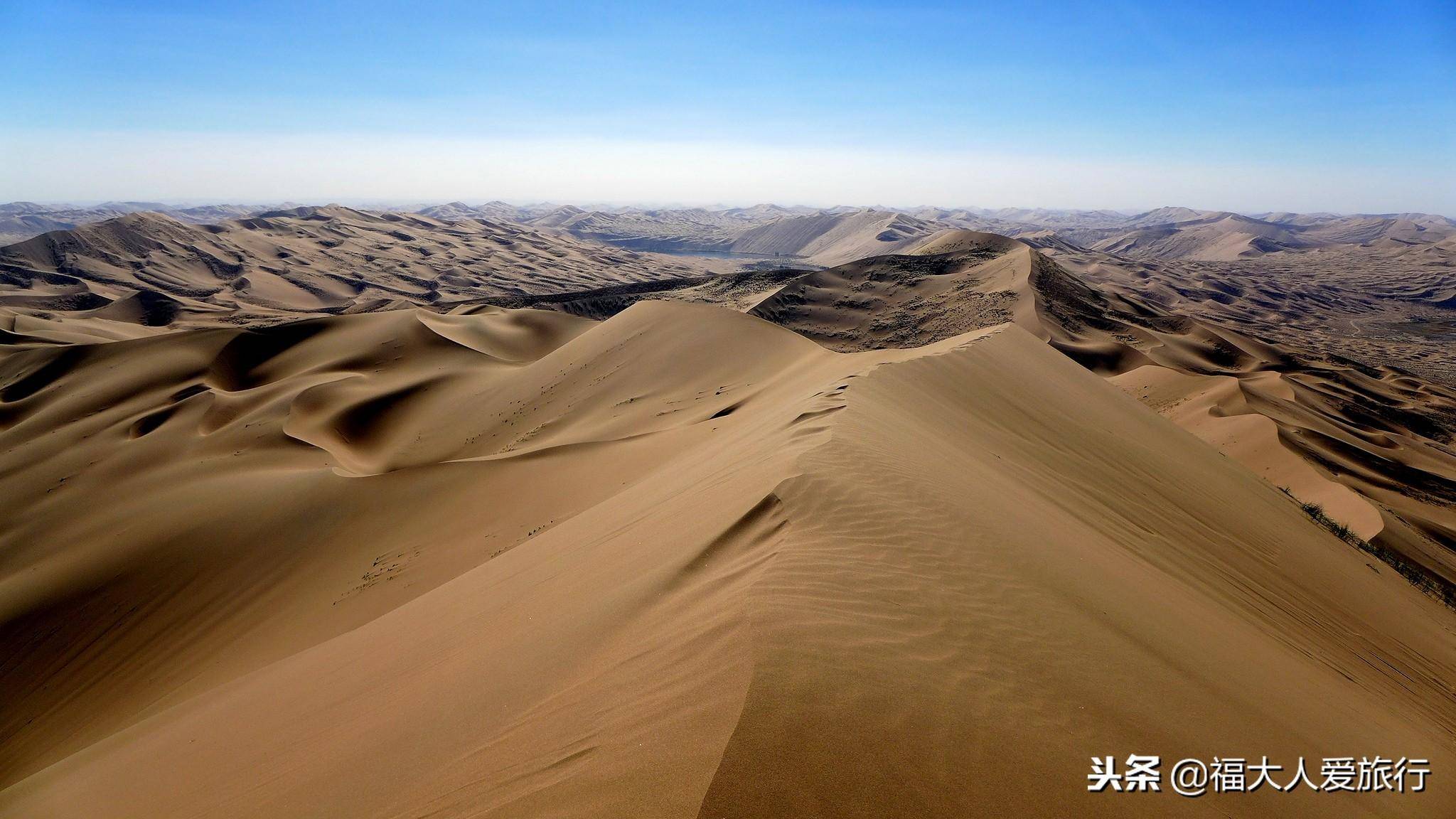 巴丹吉林沙漠除了数量众多的湖泊外,还有世界海拔第一高的沙峰,那就是号称“沙漠珠峰”的必鲁图峰,1600多米的海拔高度比撒哈拉沙漠的最高峰高出70余米。