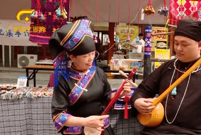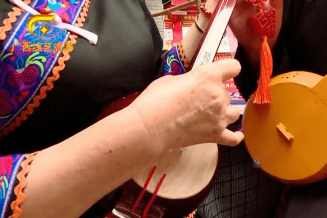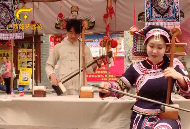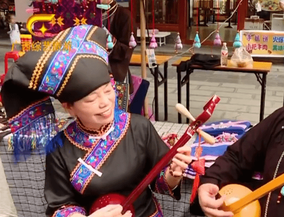 眼前这名身着壮族服饰的女子,自顾自地进行演奏,手中乐器形状很像二胡,却与二胡低沉的乐音不同,这把琴拉起来声音高亢明亮,颇有穿云裂雾之势。