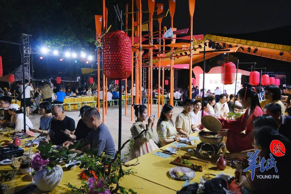 晚上,泮塘五约长老、面点师傅等人共同揭开蒸笼,为“长桌宴”举行开宴仪式。长桌宴会相见欢,“三月三·长桌宴”以“回”字型的搭建,“回”字连接着燕子飞翔的舞台,构成春回大地、一切得以顺利回归的美妙寓意。宴会上,泮塘五秀、岭南佳果、荠菜煮鸡蛋、盆菜等美食悉数登场。