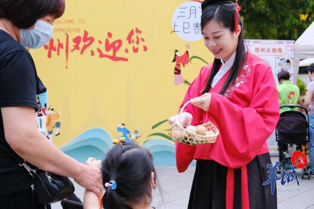 春和景明之时,年轻男女趁这一日郊外游春,文人雅士更是临水饮宴、曲水流觞……活动现场,众人喝着春茶、品尝荠菜煮蛋、泮塘五秀、西关非遗美食,回味有着千年历史的春日民俗。