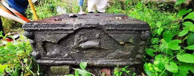 在碌碡状功德碑的旁边,还有一个方形碑的底座,上面的瑞兽花纹雕刻的极为精美,赞叹。