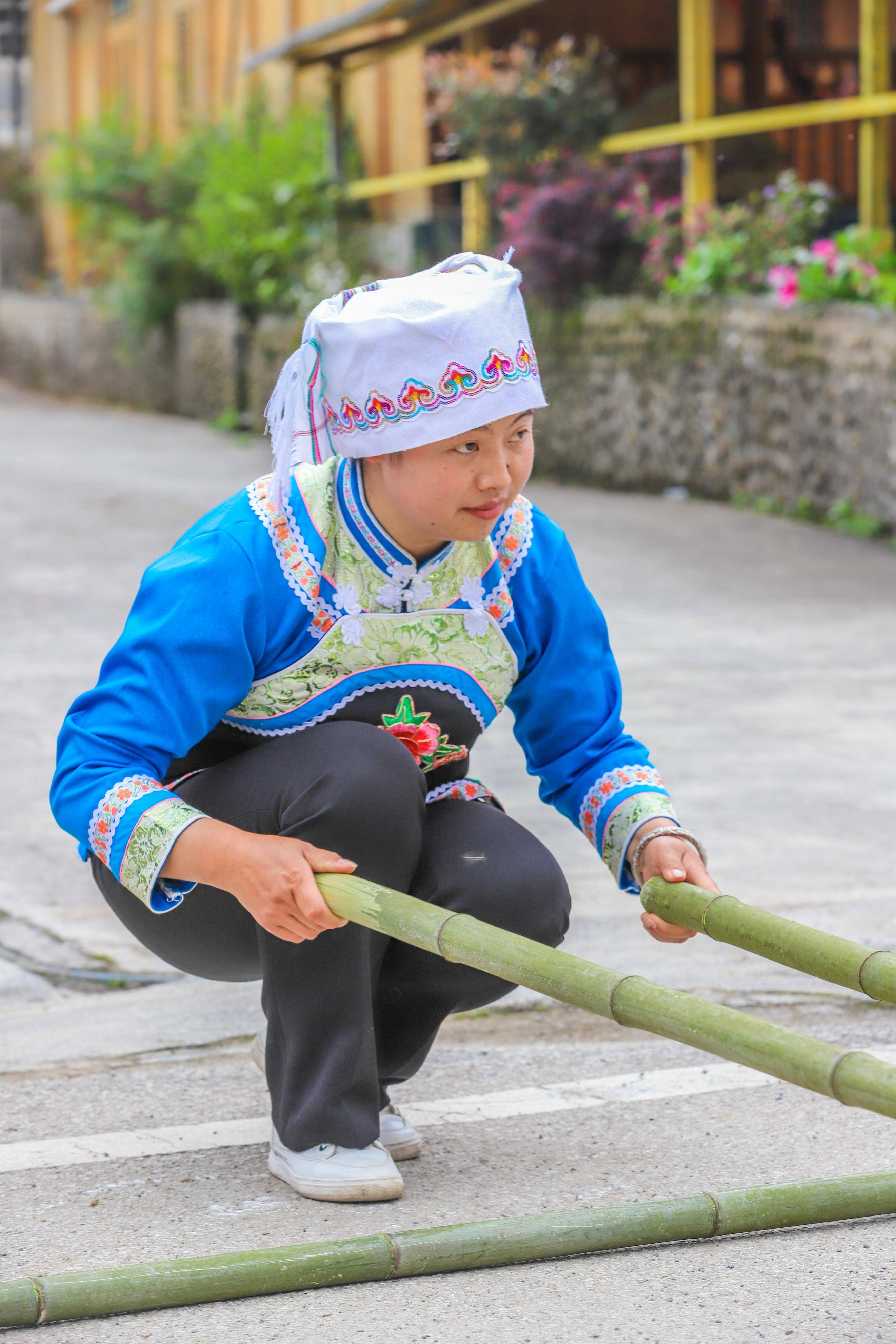 在村庄里,我参与了一次竹竿舞的体验活动。