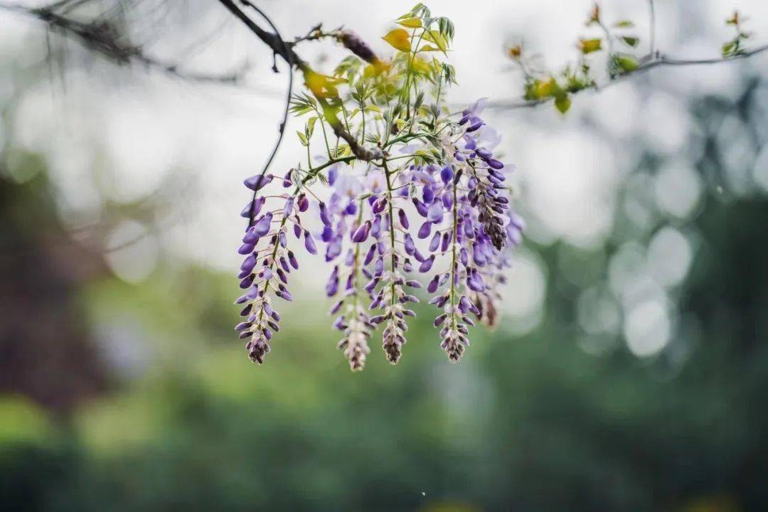 “紫藤萝的花语是沉迷的爱,大片的花木垂挂真的温柔又浪漫”