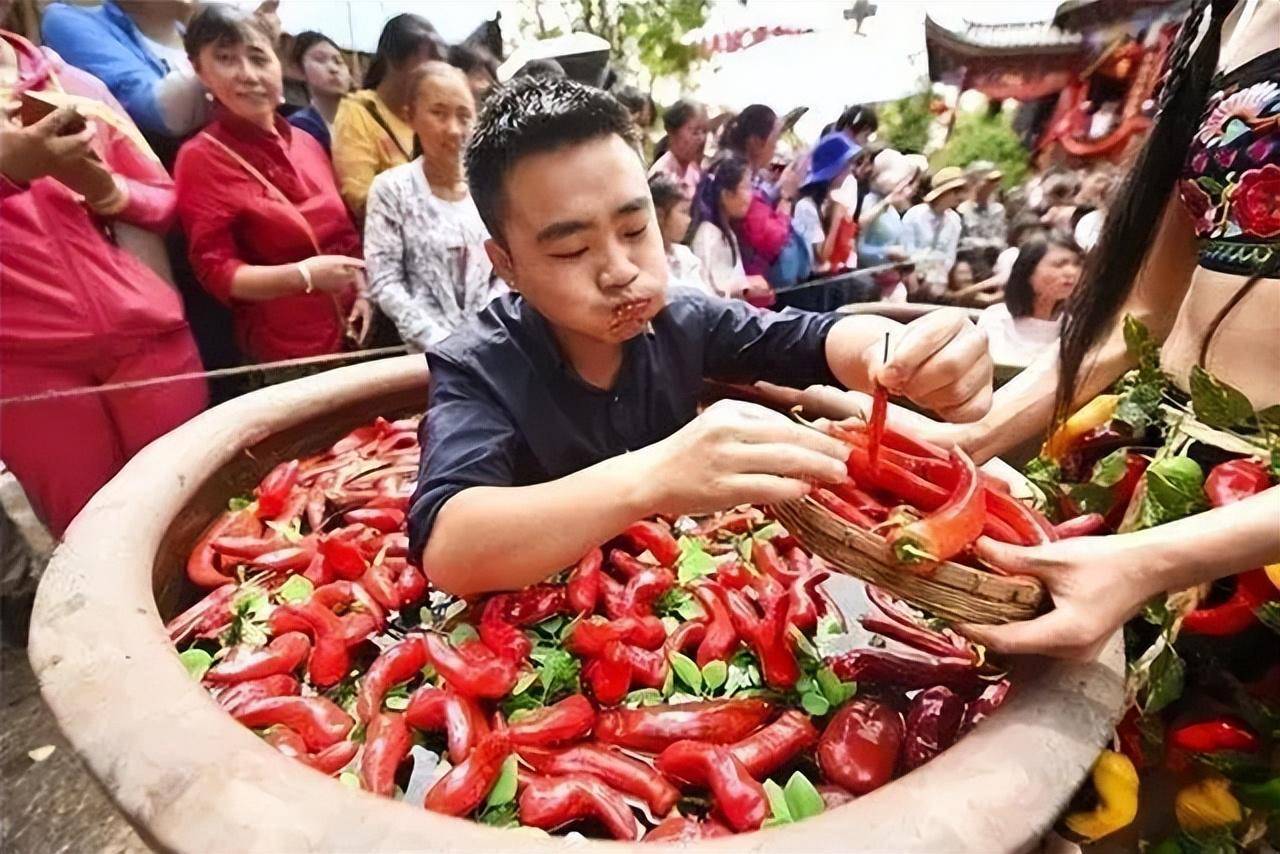 前两年,江西省宜春市曾举办“全国吃辣椒大赛”,来自江西、湖南、四川各地的上百名挑战者们,沉浸在放满辣椒的温泉中,进行吃辣比赛!