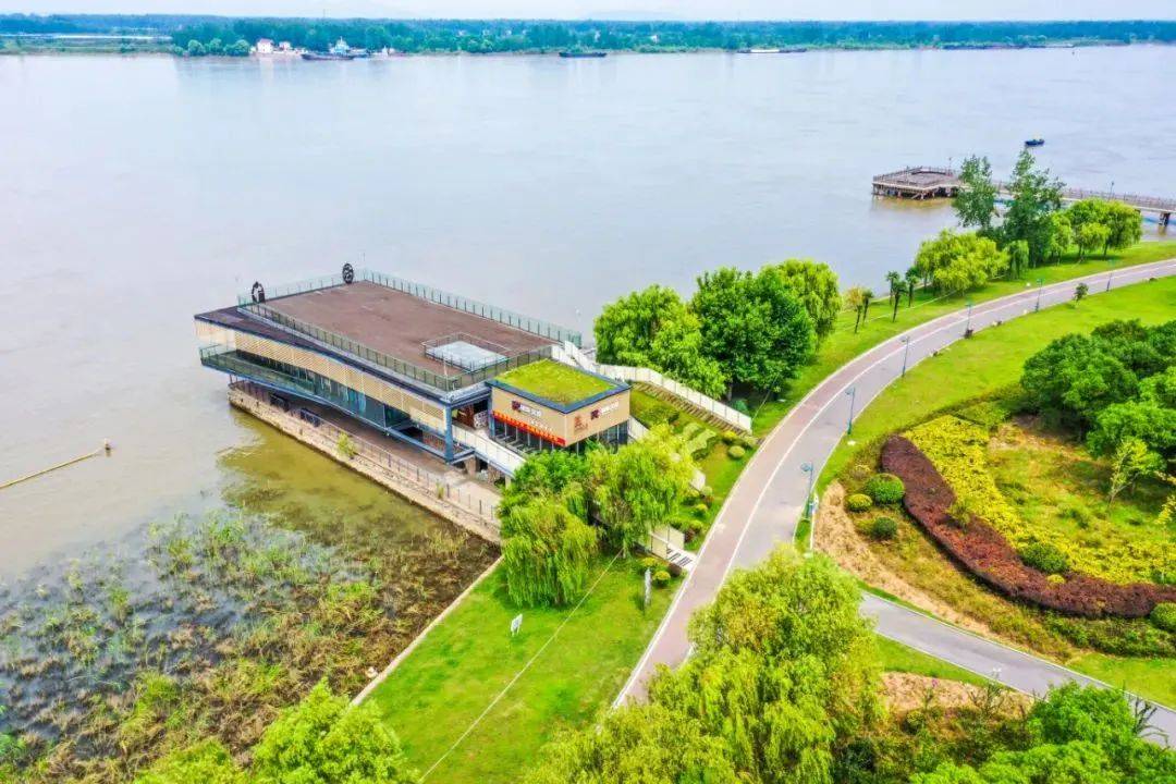 滨江码头书屋,坐落于滨江生态公园,是利用江边的一座废弃码头改造而成的一个公益性市民书屋,占地面积约600平方米。因为它特殊的地理位置及巧妙设计,被人们誉为“最美江上书屋”。其运用钢结构玻璃幕墙,将建筑主体“悬浮”在码头上,营造出如同从地面上长出来的奇特景象,像一个通过书海的“码头”。在顶层可凭栏远眺,观江水滚滚、看水天一色。