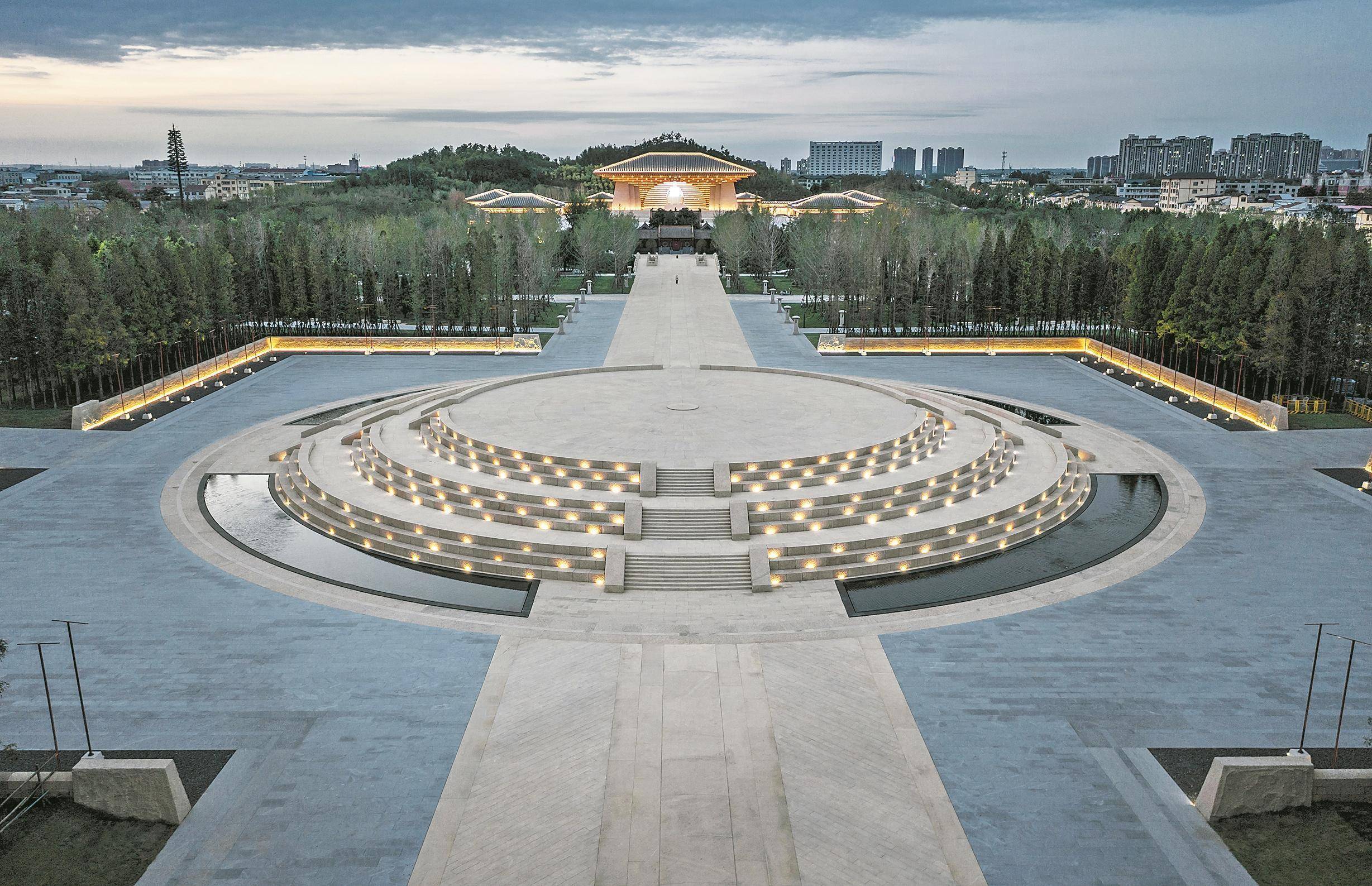 全新的黄帝故里园区占地40公顷,总建筑面积11万平方米,从南到北分为七大景区,能够体现中华文化元素与概念的建筑细节随处可见,每一处景致都是对“根”的探寻。