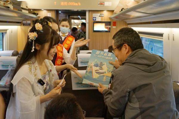 新华社客户端浙江频道4月23日电(记者林光耀)“您知道‘欲把西湖比西子’的下一句是什么吗?”22日下午,在由北京南站开往温州南站的G183次列车上,一场特别的“接龙赠书”互动活动正在举办,工作人员向旅客抛出这样的问题。