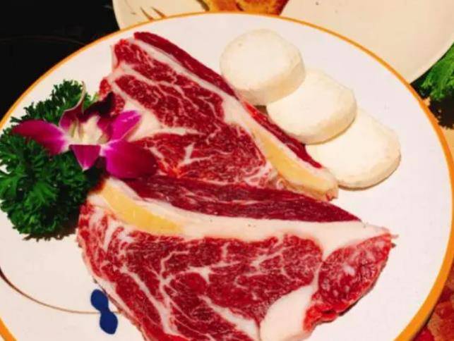 还有延吉生拌牛肉,切好的牛肉片,蘸着调的酱汁吃,据说牛肉特别的鲜美Q弹,吃着口感爽滑,鲜到不行。