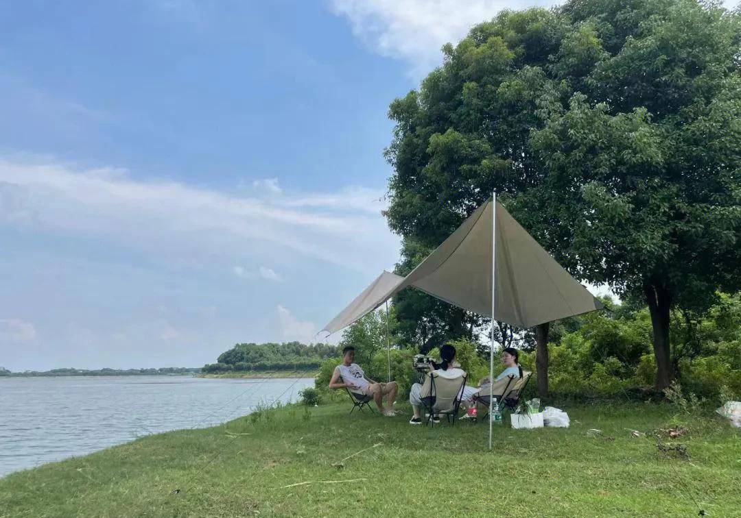 我们经常一家人在湘江边上露营,因为湘江边上视野空旷,有风凉快,有树可遮阴。小番茄最喜露营了,每次出来玩都不想回家。