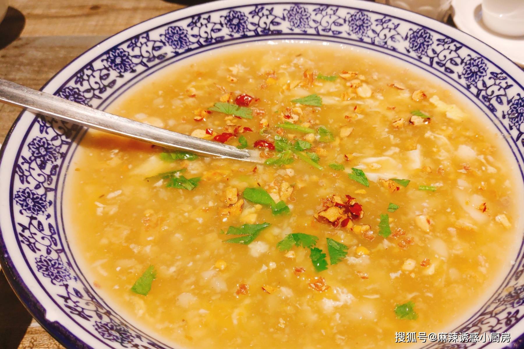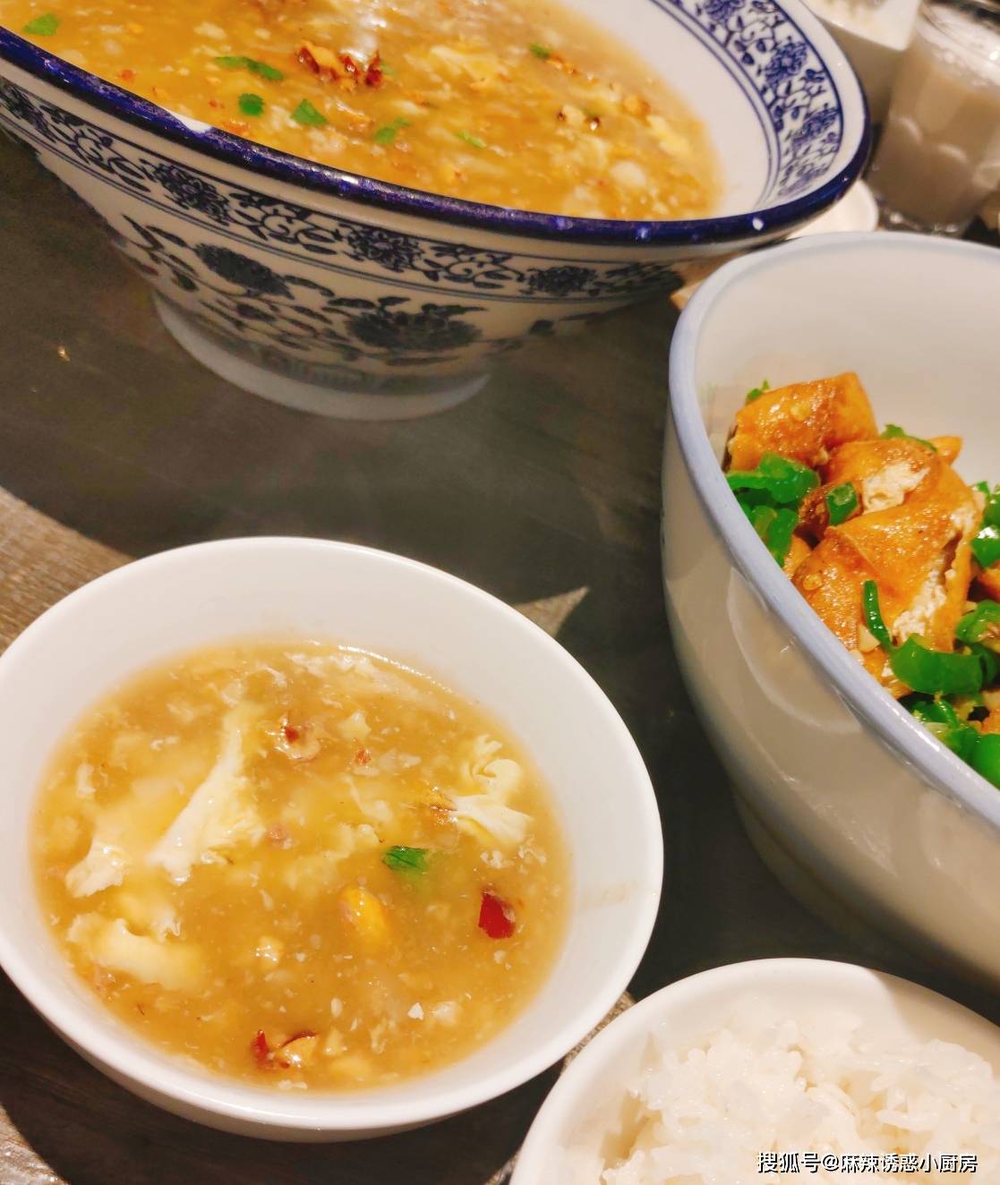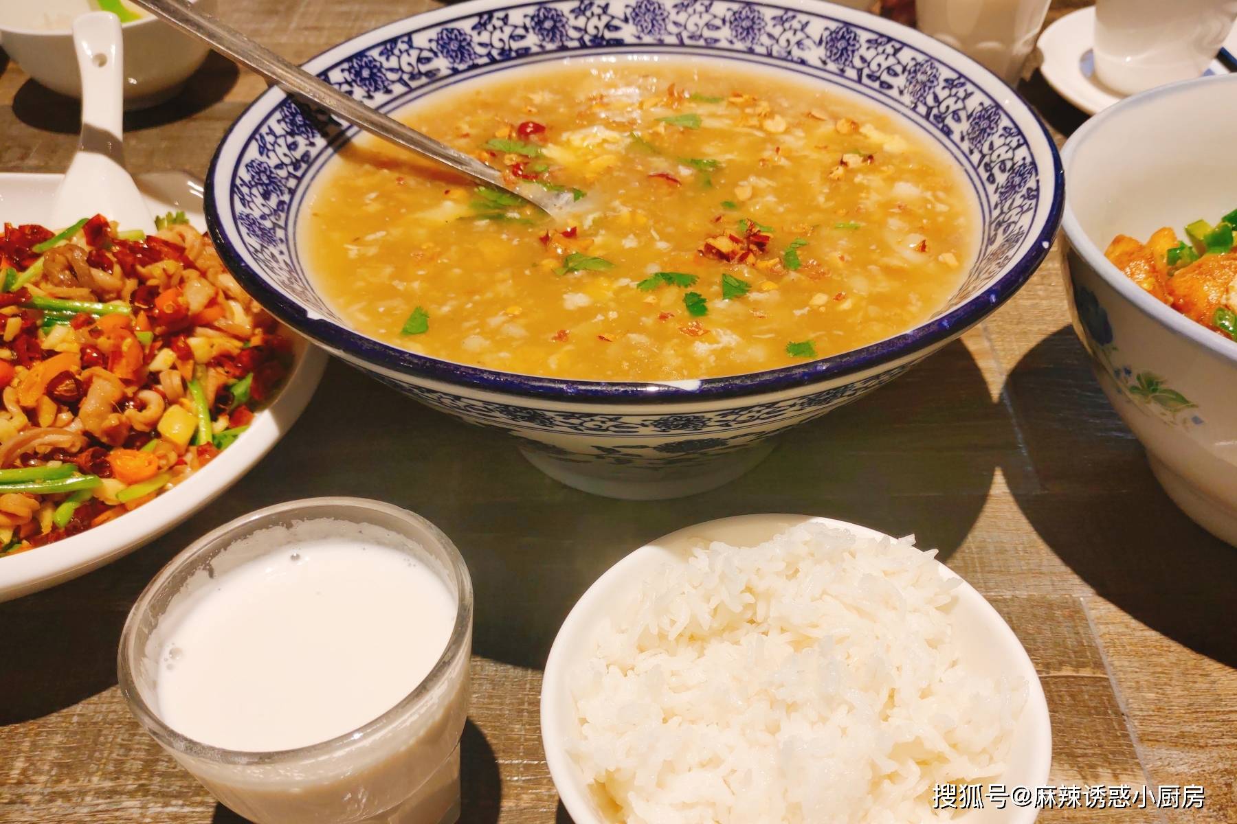 考虑到小孩子点了份蒸菜,原谅六厨记不清名字了,不过这种蛋皮、鱼卷和年糕切片趁大红豆蒸出来的口感香糯软甜,挺适合孩子吃。这道菜在一般的湘菜馆也少见。最后上来一个汤,说是本地特色。这个六厨可一定要求教方家这叫啥汤了。卖相有点类似河南的油茶、胡辣汤、六厨故乡的潵汤、豆沫,口味咸香滑嫩,有蛋花下芡粉,加花生碎和枣干碎增香丰富口感,六厨喝了三碗,主子竟然喝了四碗半,哈哈,生生把一大盆汤给喝完了。