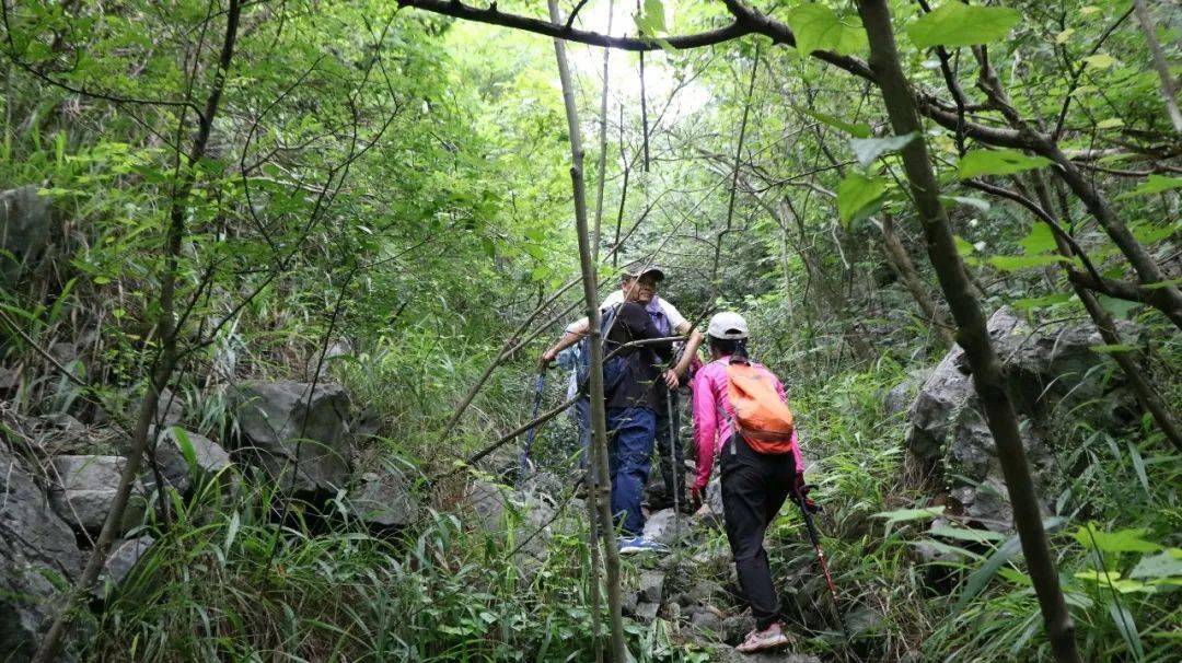 在茂密的树林和荆棘间穿行,步履艰难,却能感受到“天然氧吧”空气的清新。