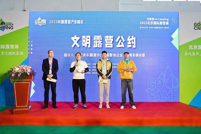 人民网北京4月23日电 (记者鲍聪颖)4月22日,2023北京国际露营展在北京中国国际展览中(顺义馆)开幕。本次展会4月22日-24日举办,为期3天。展会现场,北京房车露营自驾旅游协会、露营地企业、自驾车俱乐部代表上台,共同发布《文明露营公约》,倡导健康安全的旅游氛围。