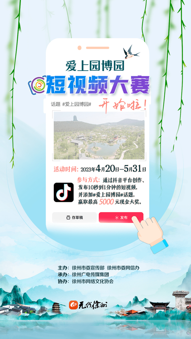 紧扣“爱上园博园”主题,运用抖音微视频手段,宣传推介徐州园博园,要求内容原创,积极向上。