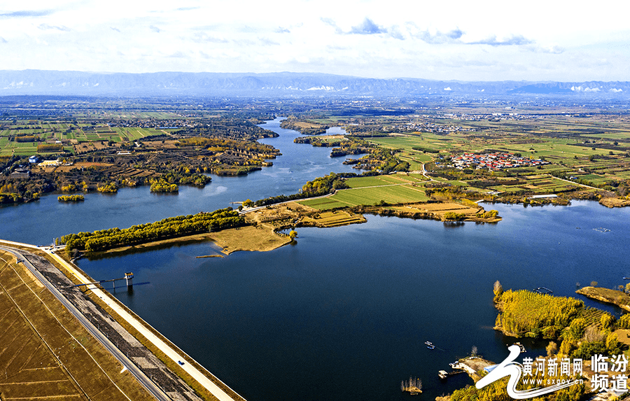 镜头一转,让我们来到山西省临汾市襄汾县双龙湖湿地公园,只见园内湖水碧波荡漾,天空蔚蓝无暇,景色美不胜收,与周边农田、村庄等相映成趣,呈现出一幅幅美丽的生态画卷。