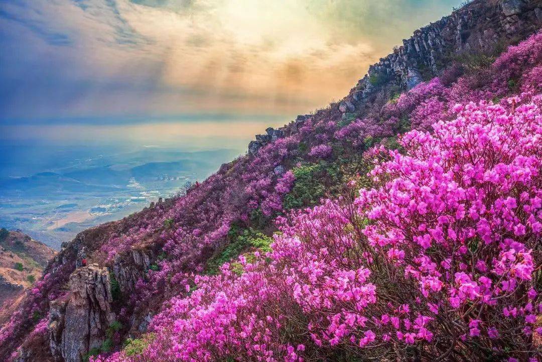 每年4月起,大连大黑山景区杜鹃花先后绽蕾吐蕊、展瓣生姿,从山顶一泻而下,纵目眺望,花海荡漾、银波耀眼、香气浮动、蔚为壮观。