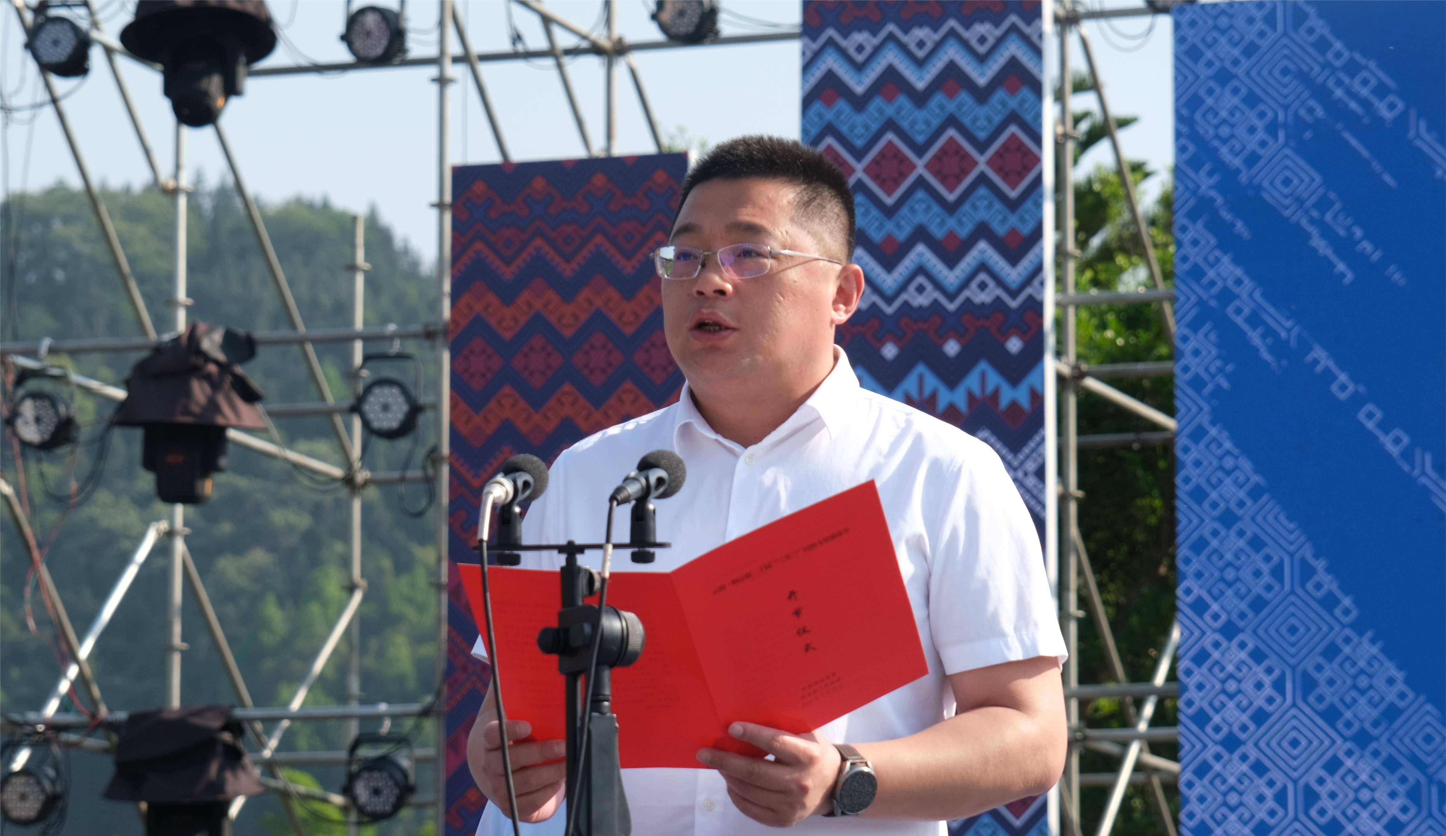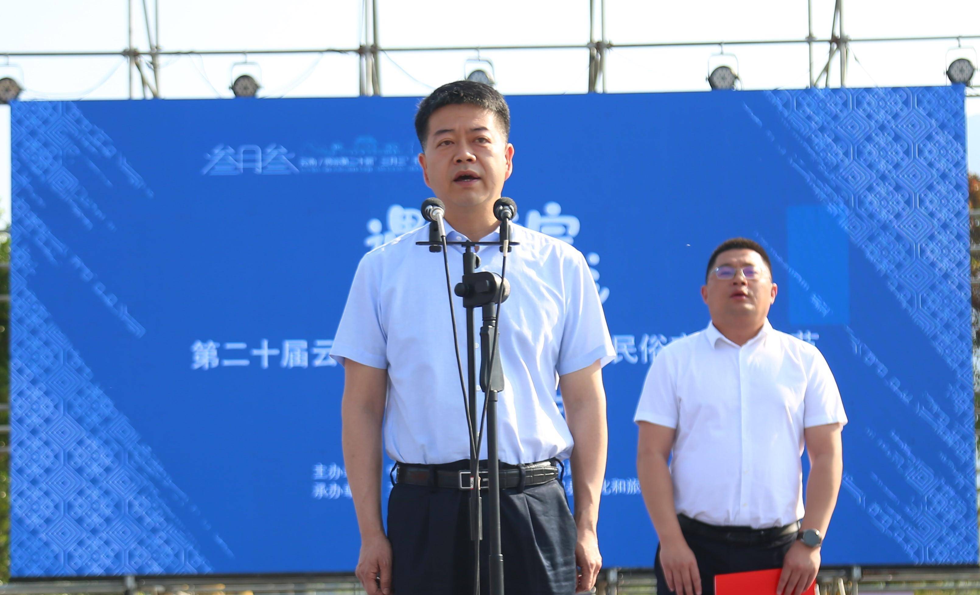 县委副书记、县长曲道凯致辞。曲道凯在致辞中指出,独具特色的“三月三”民俗文化旅游节一直是师宗旅游文化品牌的闪亮名片,更是师宗历史文化、山水文化、民族文化的生动展示。下一步,师宗县委、县政府将继续充分发挥优势、深挖底蕴,坚持农文旅融合发展,加快省级全域旅游示范县和滇东山水田园花海世界级旅游度假区建设,积极打造滇东旅游环线上重要的健康生活目的地和客流集散地。