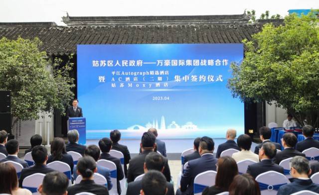 4月19日,姑苏区人民政府与万豪国际集团战略合作暨平江Autograph Collection酒店、AC(Adequate Comfort)酒店(二期)、姑苏Moxy酒店集中签约仪式举行。
