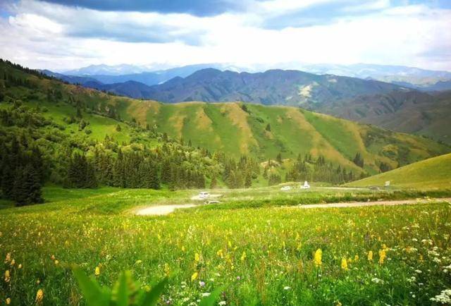但夏尔西里却不光有着郁郁葱葱的森林草甸,还有着漫山遍野的山花和山顶端终年不化的积雪。