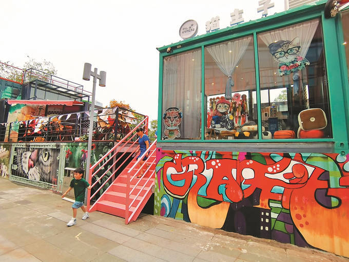 南京市鼓楼区金银街国际青年艺术街区3月31日开街,明丽的墙面彩绘颇为吸引眼球。大概因为是周一,4月10日上午街上有些冷清,临近中午集装箱式小店开门营业的也寥寥无几。“这里周末和晚上还是有一些生意的,像这样的工作日,多是周围过往的路人。”一位准备出摊的业主担忧人气。在街西头超市取团购品的居民对新华日报记者说,街巷出新之后,配套、管理也要跟上。