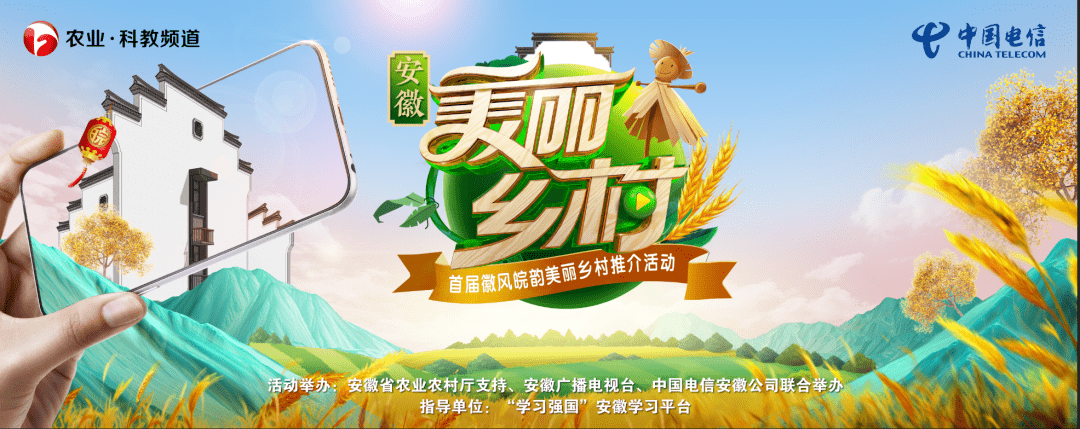 “安徽省首届徽风皖韵美丽乡村推介活动”由安徽省农业农村厅、安徽广播电视台、中国电信安徽公司联合举办,学习强国安徽平台指导。