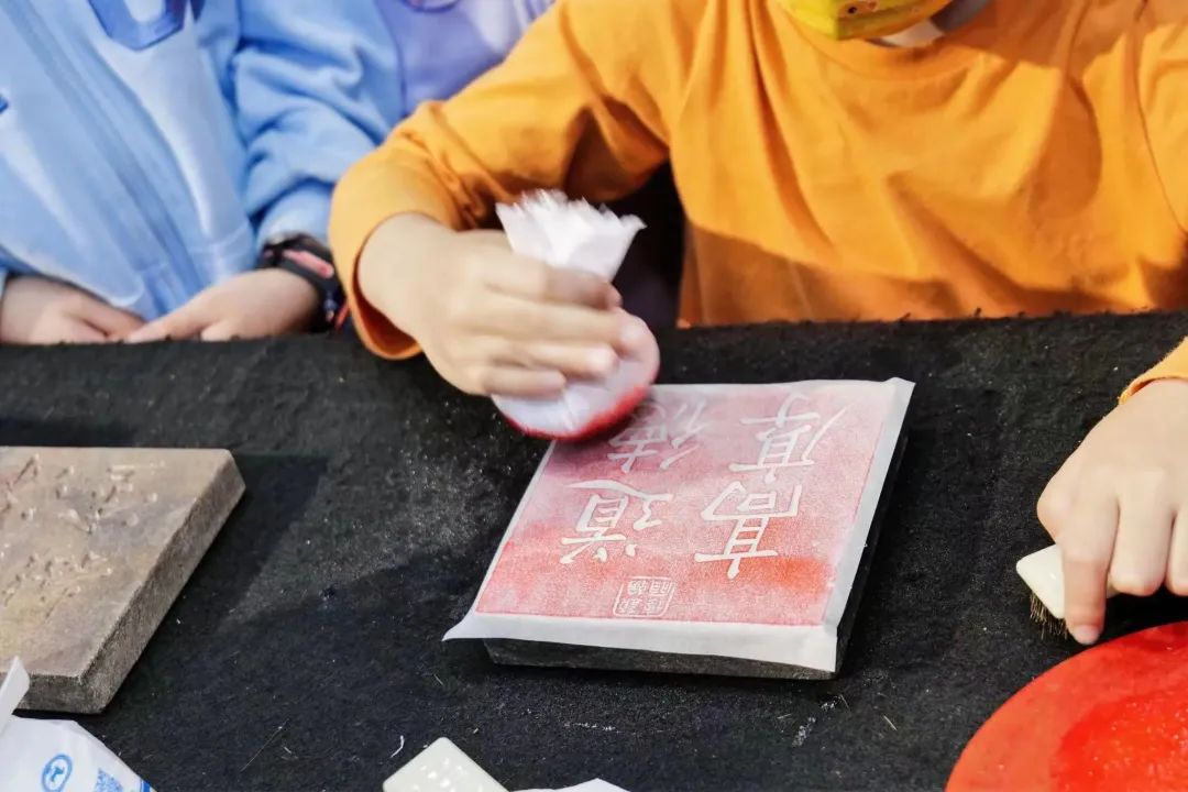 山东作为齐鲁文化圣地,文化底蕴深厚,拥有众多文化遗产,在非遗互动体验区,观众可现场体验手读论语,感受儒学经典,也可以体验非遗拓片,从宣纸打湿到上墨,再到锤拓、起纸等多个步骤亲身体验拓片的乐趣,感受明礼生活和传统文化,近距离感受山东非物质文化遗产的魅力。