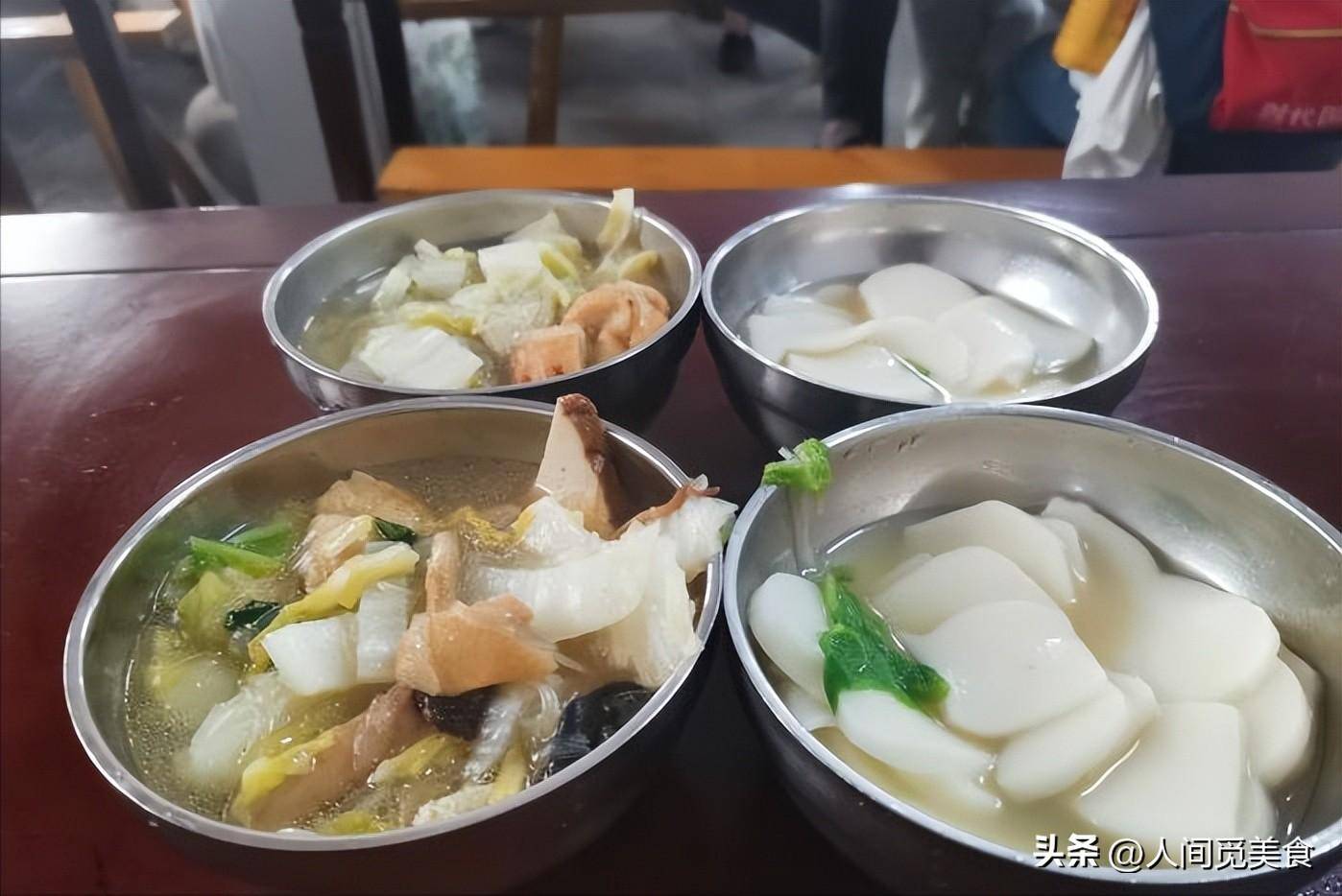 这一碗菜的蔬菜都很新鲜,吃起来很香甜,而且清淡可口,吃惯了城市里的大鱼大肉,感受一下清淡的味道,感觉整个人都好了起来。热乎乎的暖胃暖心,还有这个年糕,水煮年糕软糯香甜,入口绵实,嚼劲十足,一吃就会爱上,年糕也是浙江的特产,怪不得这么好吃。